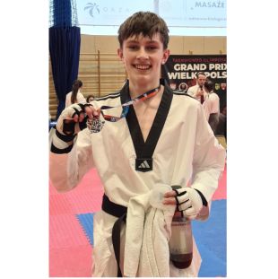 Wiktor Jakóbczak, uczeń klasy 1Te, ponownie stanął na podium turnieju Grand Prix Wielkopolski w Taekwondo Olimpijskim. Tym razem zajął jego najwyższy stopień zdobywając pierwsze miejsce i złoty medal w konkurencji kyorugi (walka sportowa).